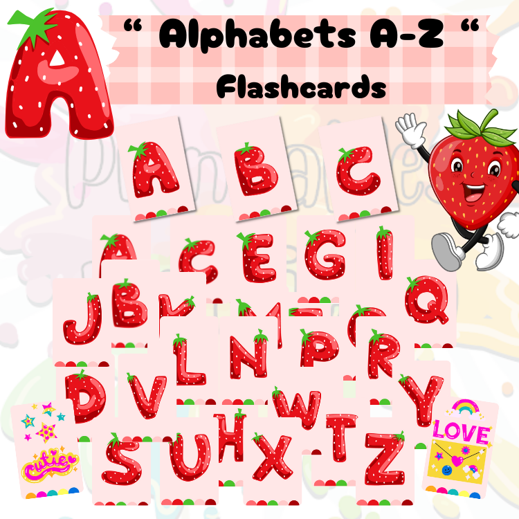 🍓 Alphabet A-Z Flashcards – Printable Strawberry-Themed ABC Cards for Kids