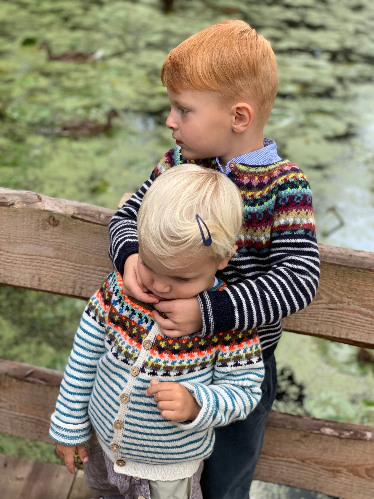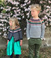 Adventurous beginner/Intermediate. Chart-reading skills and knowledge of how to do the Fair Isle (stranded knitting) technique. You’ll also need to know how to cast on, knit ribbing and garter stitch, cast off, and do a little grafting under the armholes.