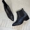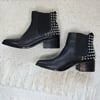 Steve Madden black leather pull on ankle boots with silver tone metal spikes and a low block heel.