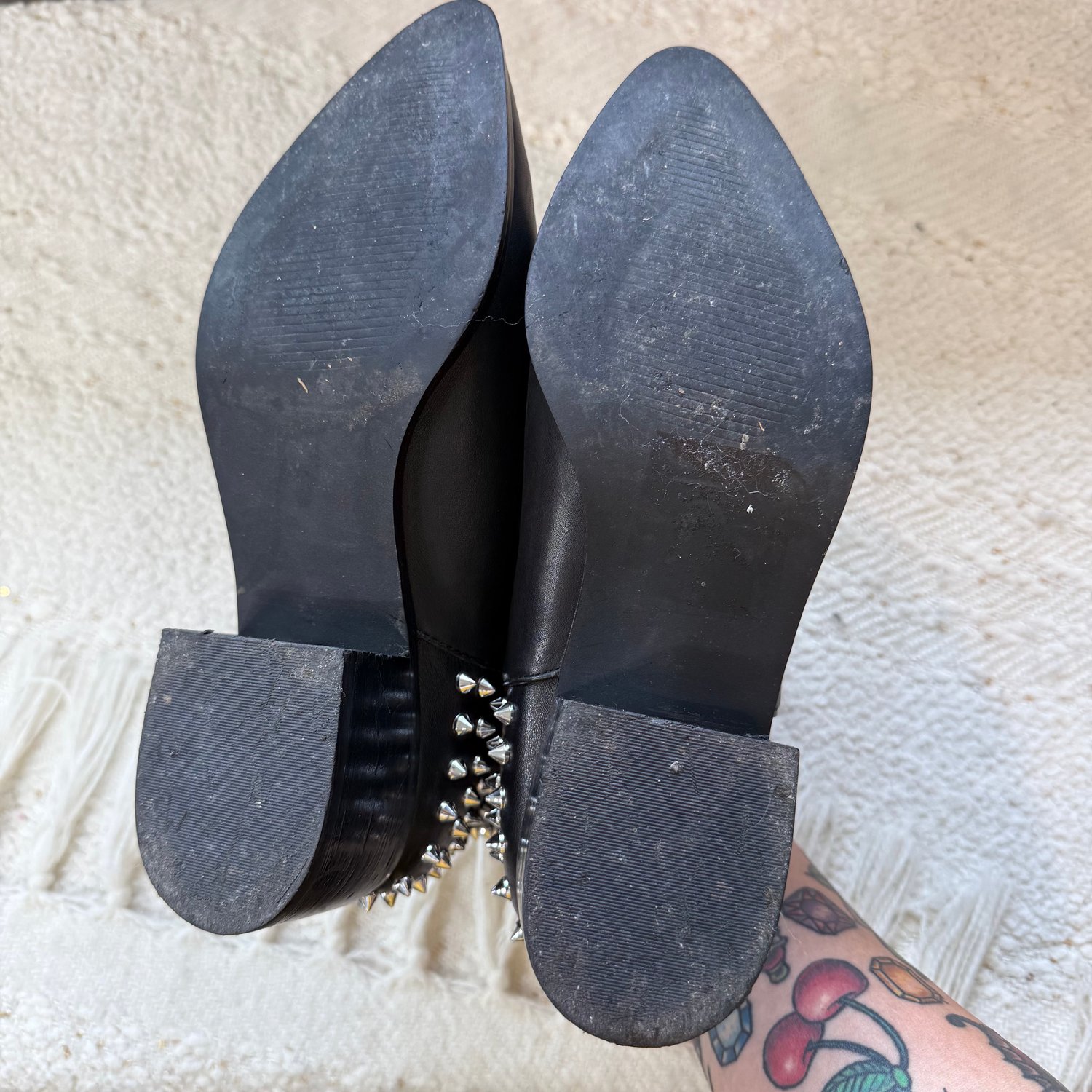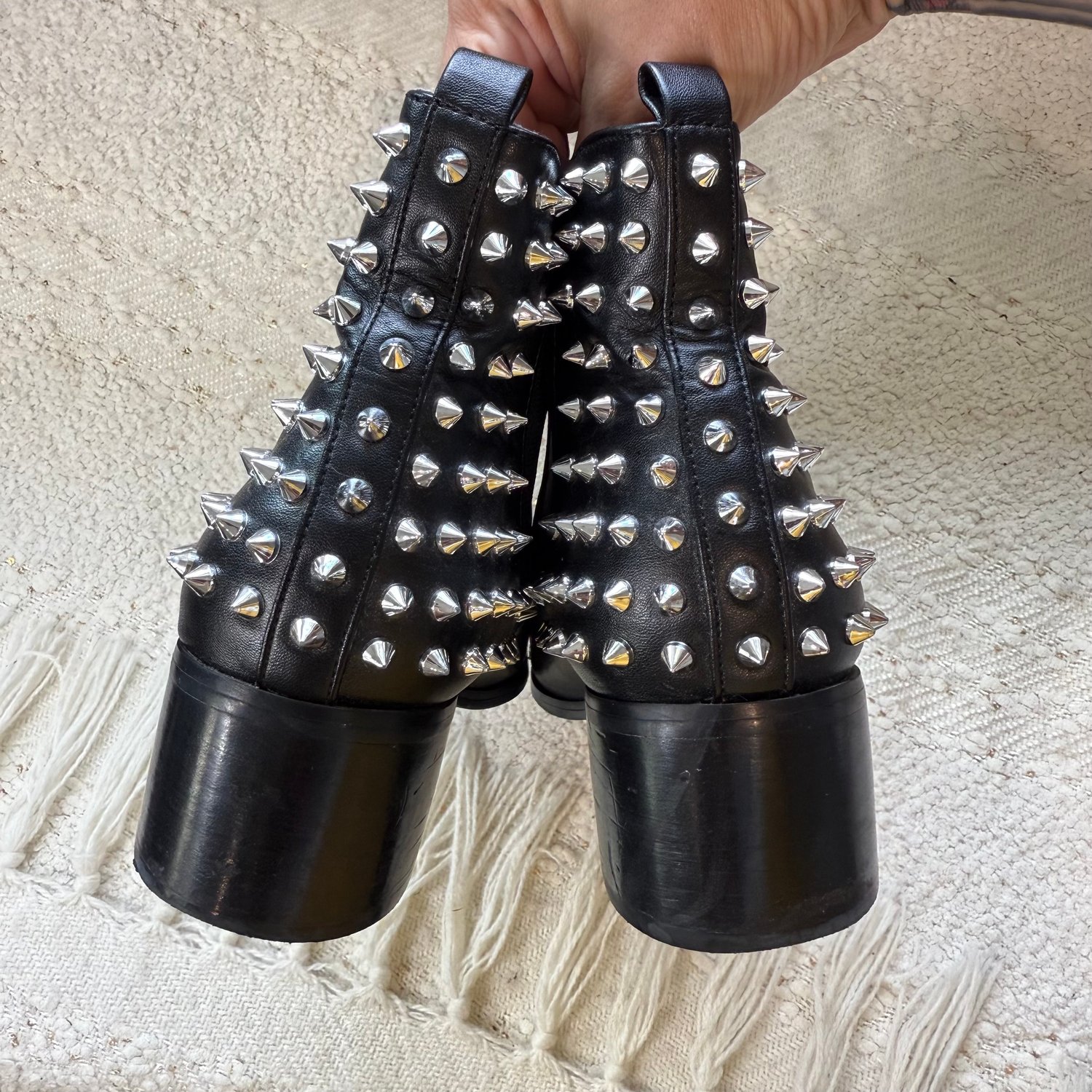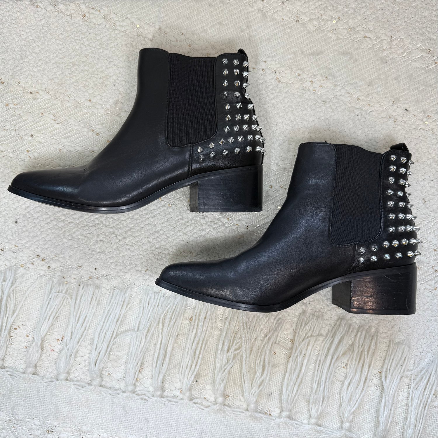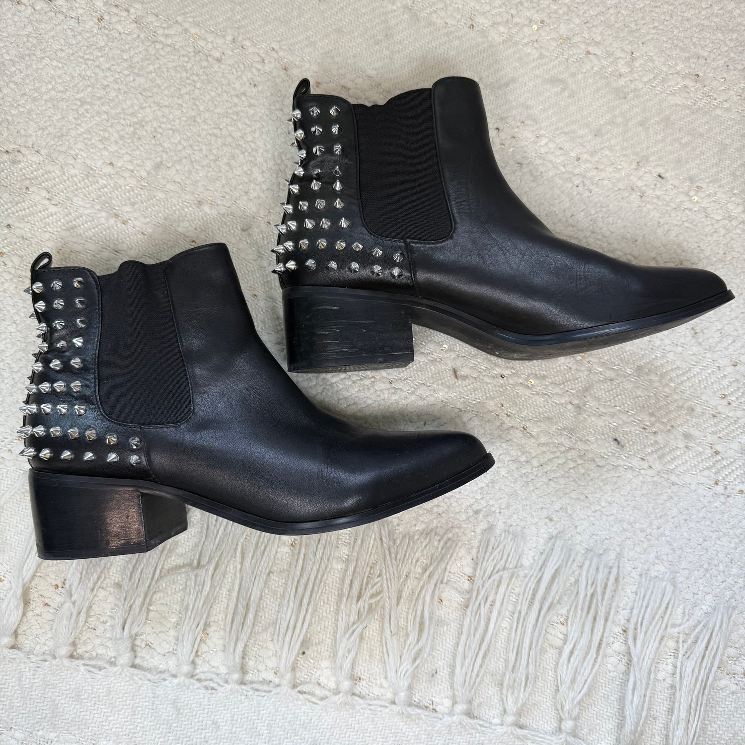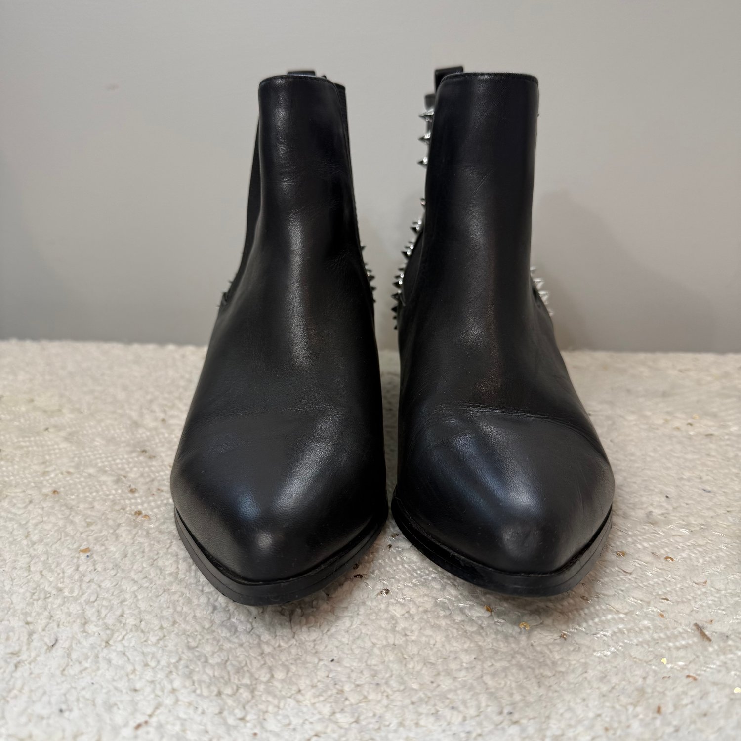 Steve Madden black leather spiked ankle boots - size 7