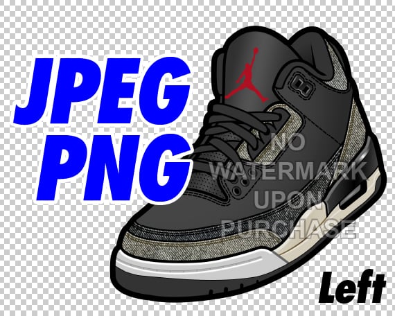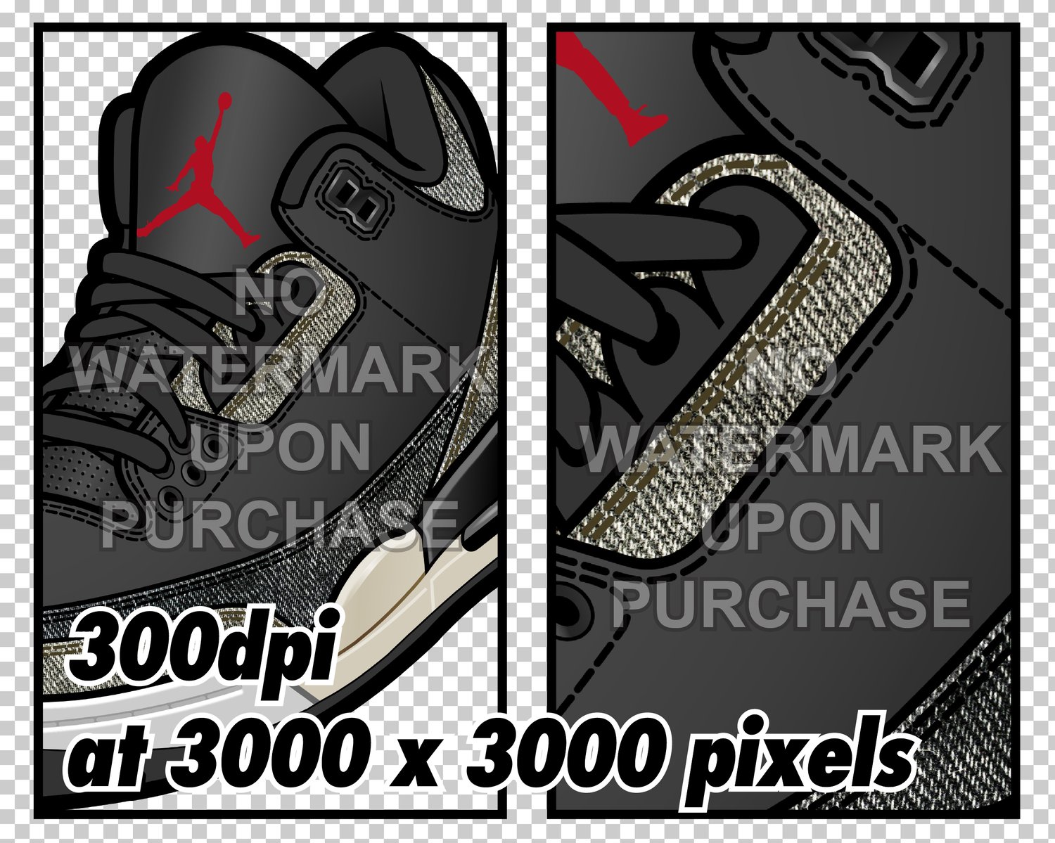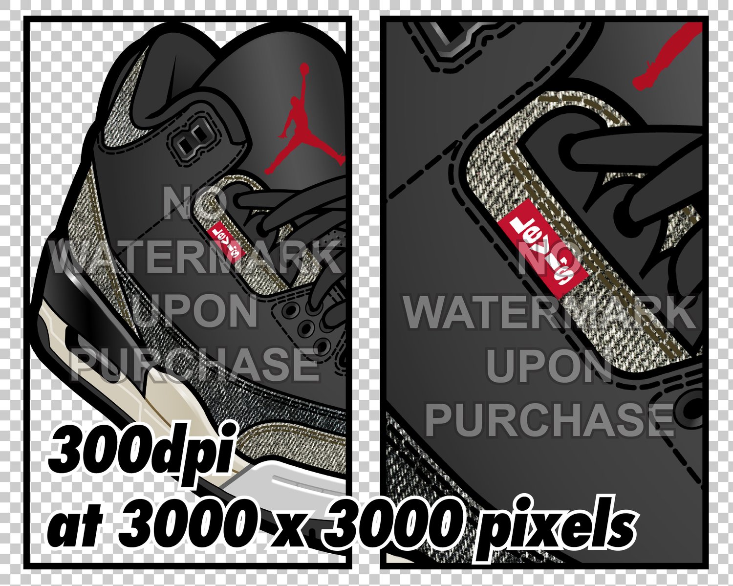 Air Jordan 3 x Levi's Black Gym Red JPEG PNG digital sneaker art