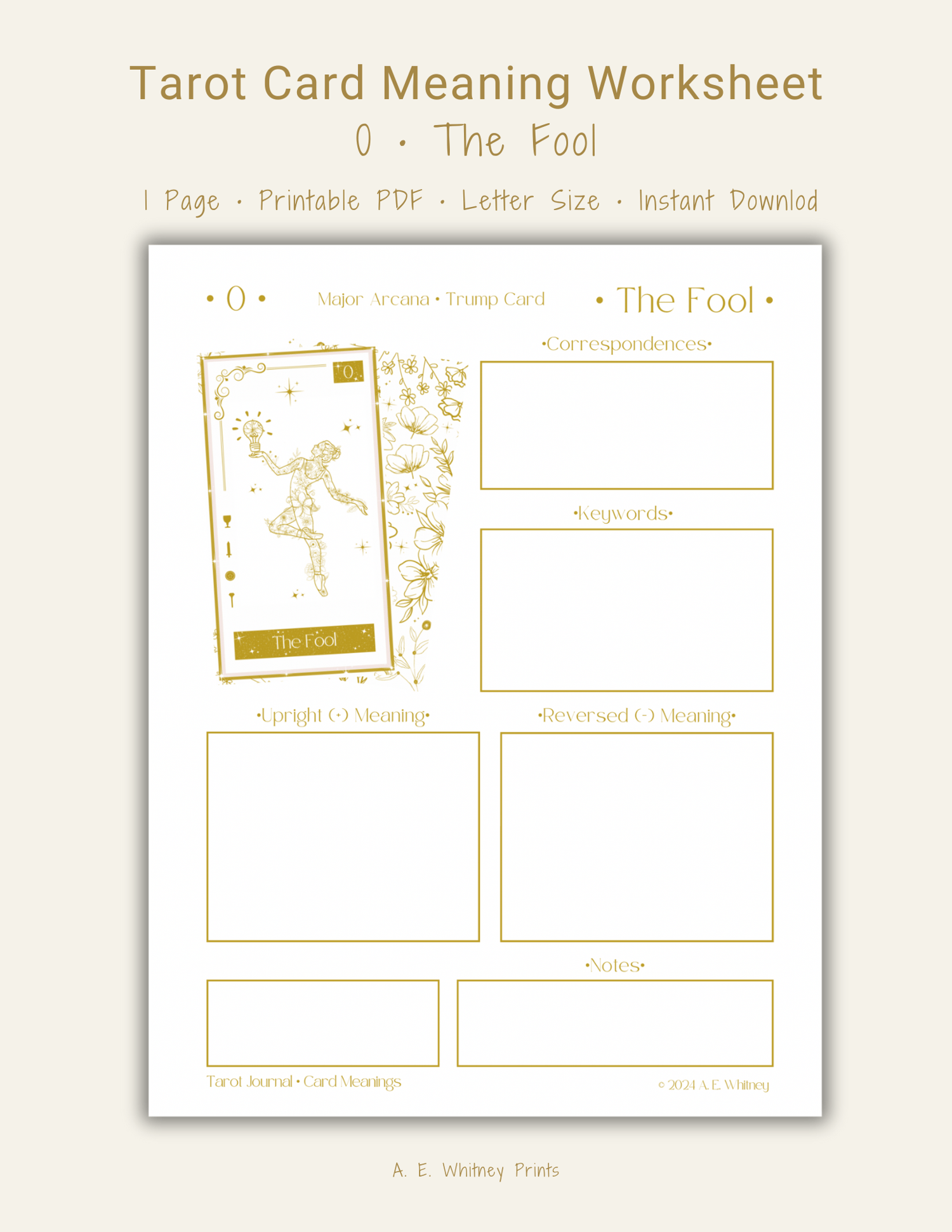 Printable Tarot Study Journal - Card Meaning Worksheet • The Fool