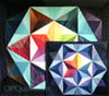 Triad Harmony is the newest quilt from Elizabeth Eastmond, and is a small wallhanging (33" w by 29") which is perfect for displaying a range of colors in a unique way. This pattern is designed to be used with shaded, or ombré fabrics. But as you can see in the other images, it also works up beautifully in Kaffe Fassett fabrics, or it can also be scrappy. Think of this as the little sister to Annularity, also a quilt designed by Elizabeth Eastmond, and available on this website.