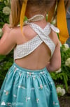 Create a charming, vintage-inspired dress with the Vintage Very Cherry Baby & Toddler Dress Sewing Pattern! This delightful pattern features a playful crossover open back and a classic vintage length, making it a perfect choice for any occasion. The design includes a comfortable flat front waistband with an elastic back for a snug yet flexible fit.