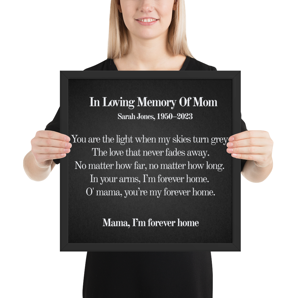 ✨ Honor your beloved mother with this beautiful personalized wall art featuring the touching lyrics from "Forever My Home."