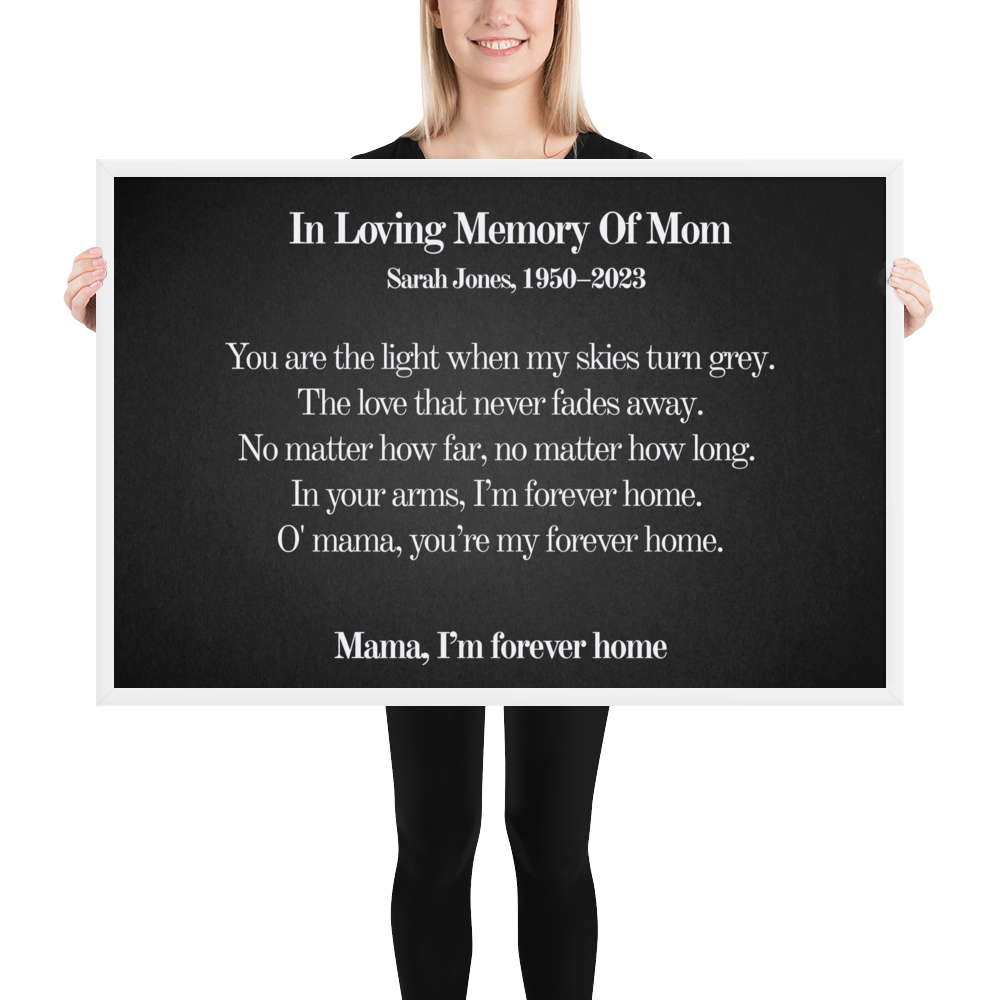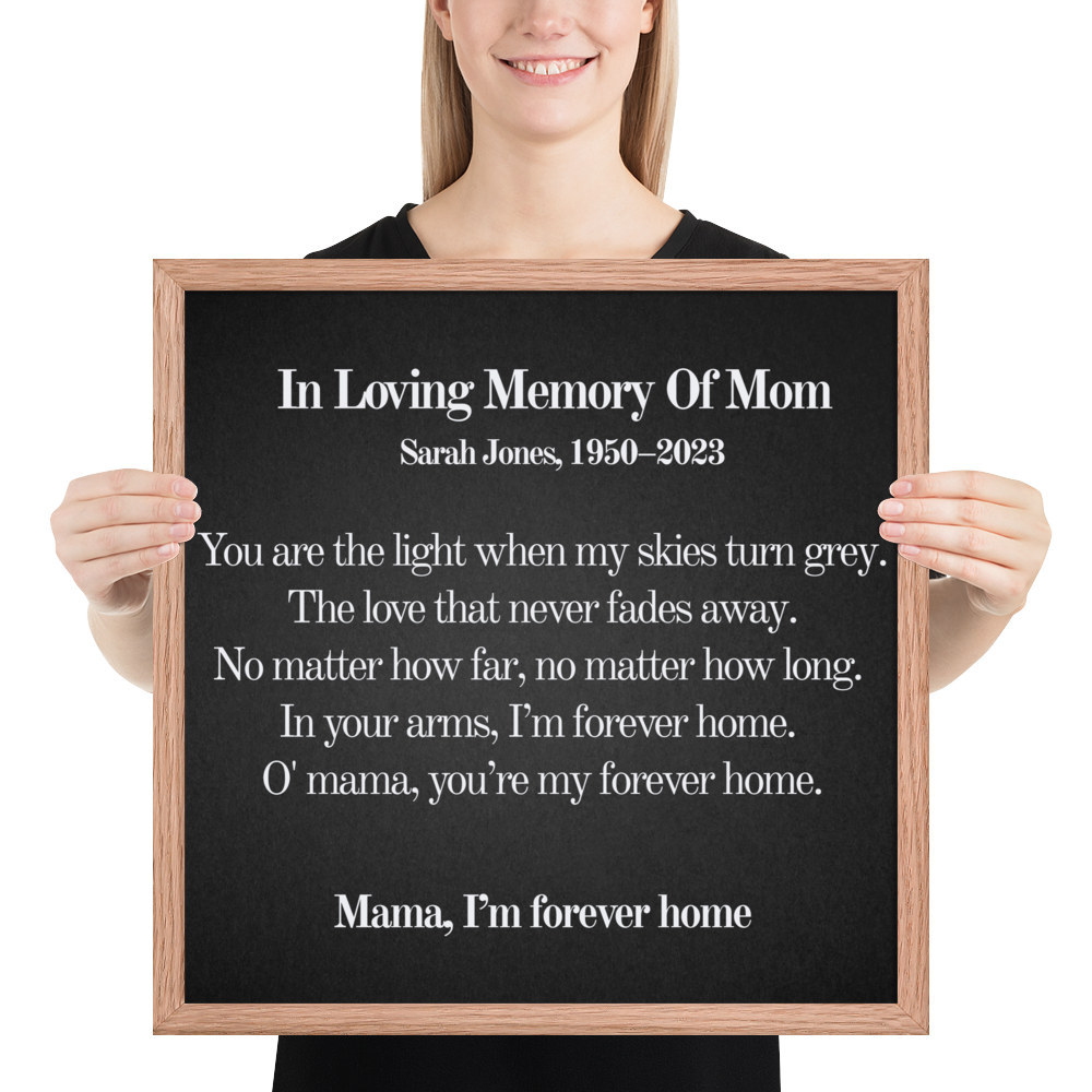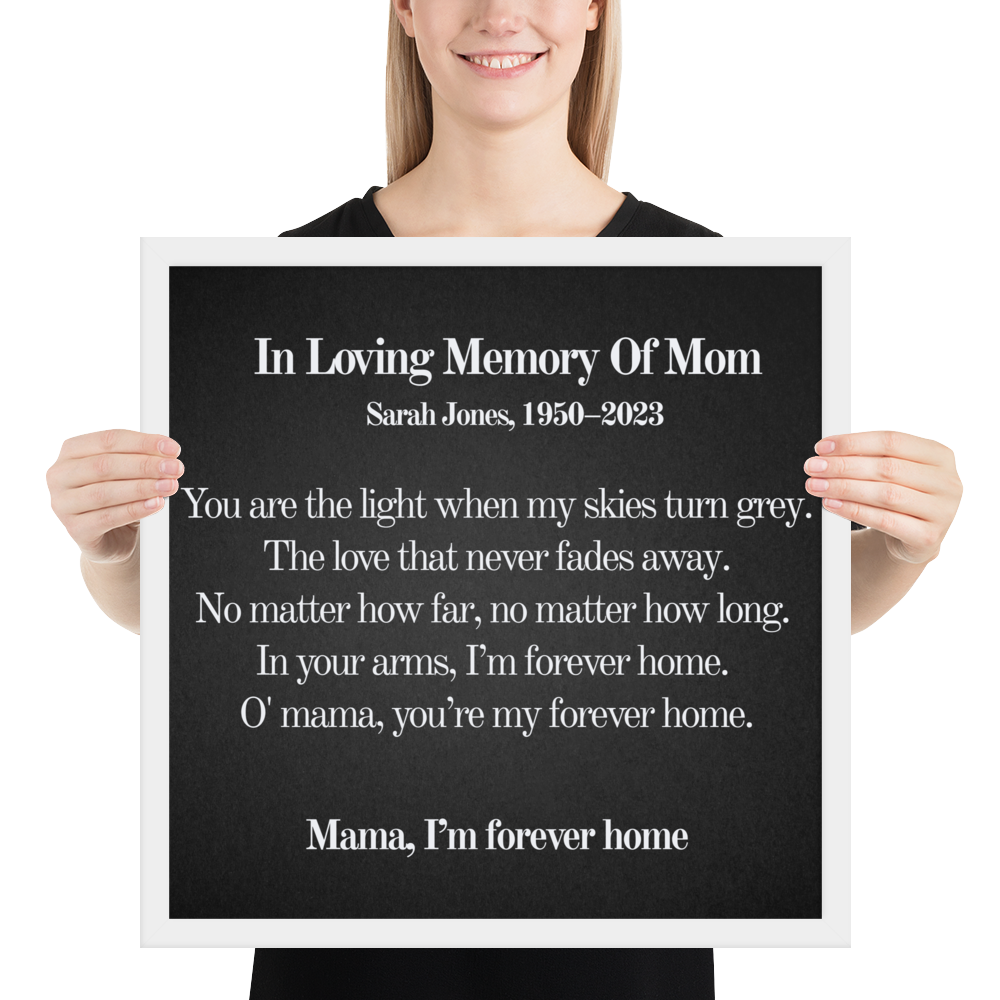 Personalized Memorial Wall Art for Mom — Forever My Home Lyrics Print, In Loving Memory Gift, Custom Name & Dates