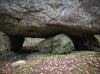 A large boulder rests on top of small stones.