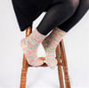Sample used approximately 75g (300m {328yds}) for Medium Size pair of socks (women’s EU 40.5/US 9 ½). Please note that the yardage requirements will vary depending on the heel option, sock circumference, foot and leg length, and any differences in gauge.