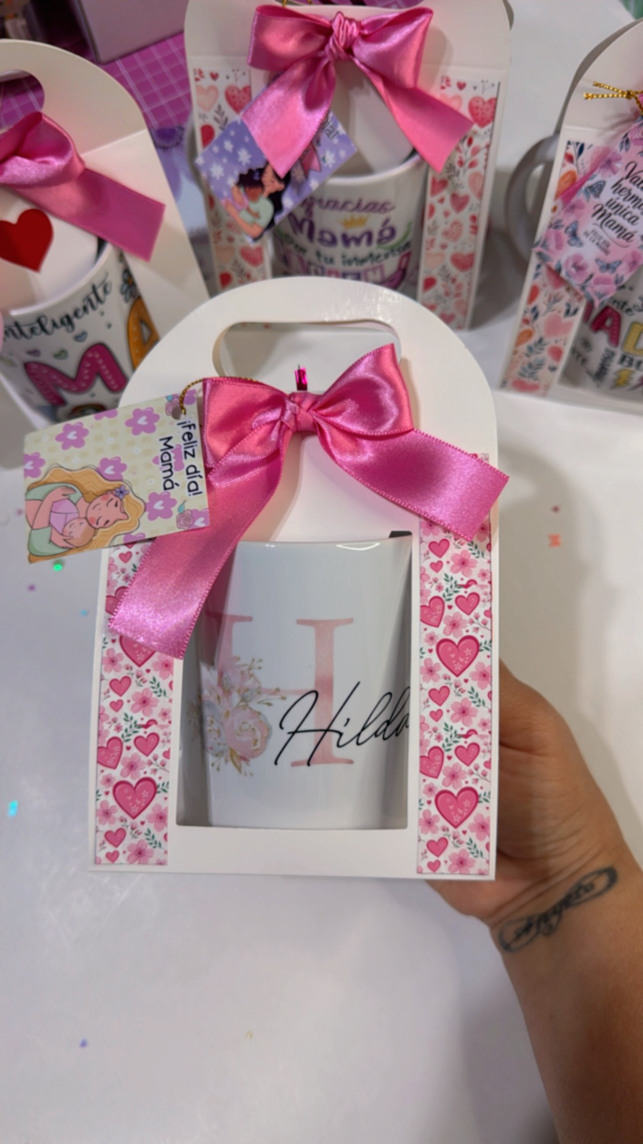 Caja ventana para taza de 11 oz. Modelos flores y blanco