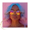 Pastel Premium Fashion PNG Stock Image: Woman with Pink & Blue Pastel Short Wavy Bob Cut with Ombre Mirror Sunglasses & Pink Background, Youtube Covers, Social Media, Book Cover Designs, Storytelling, Stock Photos