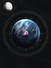 Earth from orbit in Destiny 2 featuring the Traveler & Luna.
