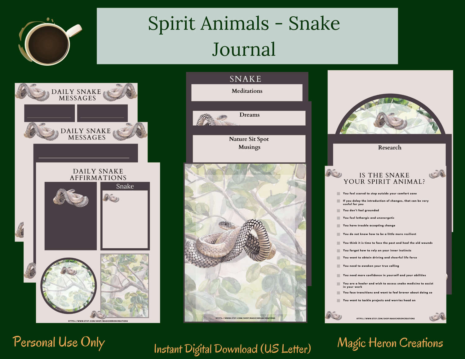 Snake Spirit Animal Printable digital printable Journal is for those who feel Snake is their spirit animal, power animal, animal totem, or spirit guide.