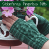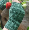 These casual fingerless mitts feature a classic cable panel over the top of the hand with comfortable stockinette stitch for the palm and thumb. The left and right mitts are similar but not identical. The pattern includes woman's small/medium and large sizes.