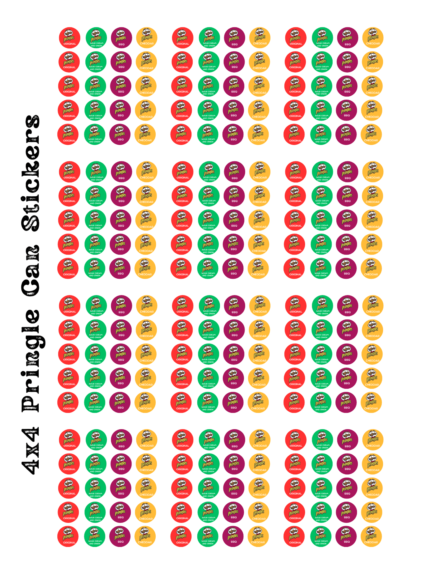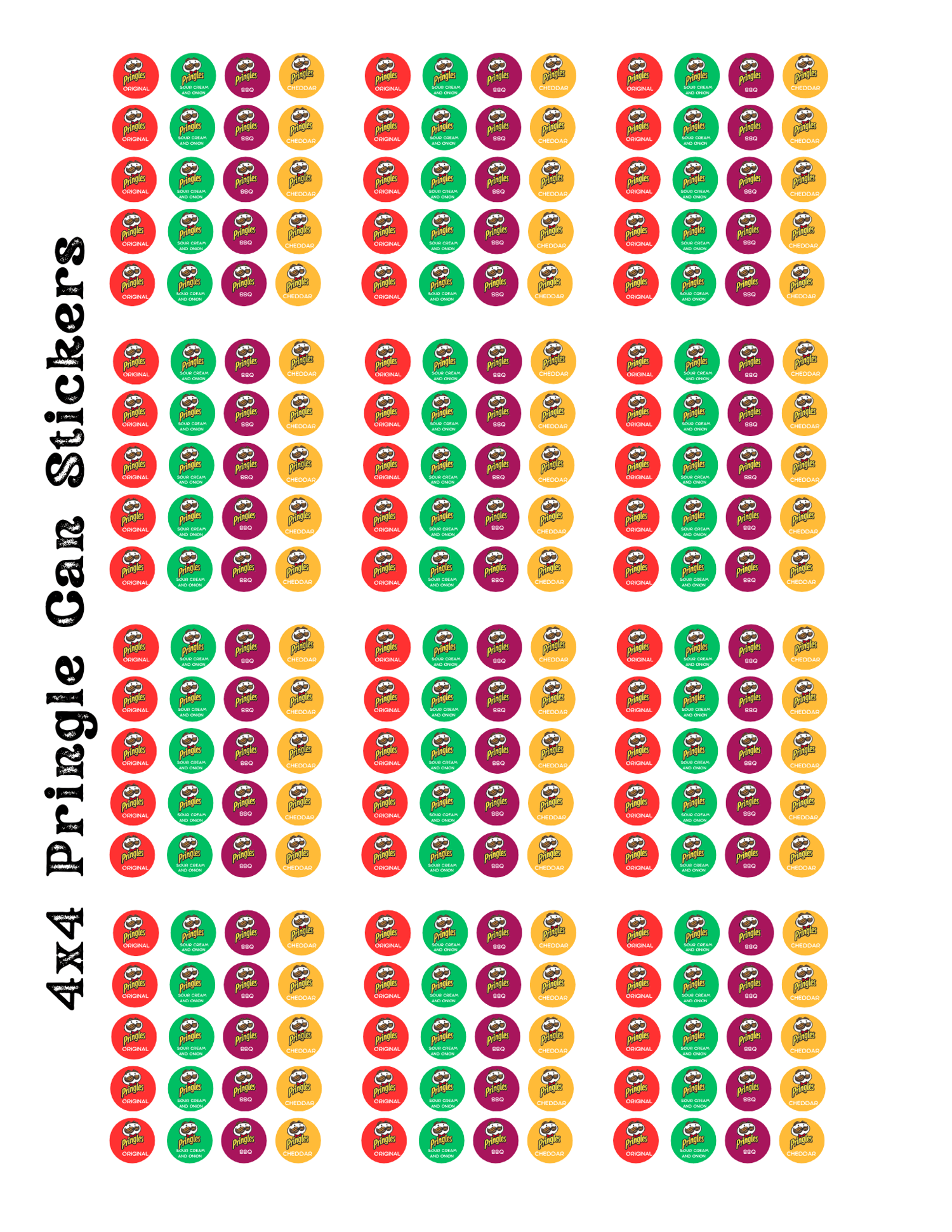 Enhance your Pringle cans with over 1,380 high-quality 4X4 stickers. Made from durable material, these stickers are perfect for customizing and personalizing your Pringles experience. Transform your ordinary Pringle cans into unique and eye-catching decorations for parties, events, and more. Upgrade your snack game today with 4X4 Pringle Can Stickers. These can be placed at the bottom of you pringle can, on the sides or even the top. Please use glossy stickers paper to print out. These items will be grouped and your able to ungroup, resize, and edit to your liking.