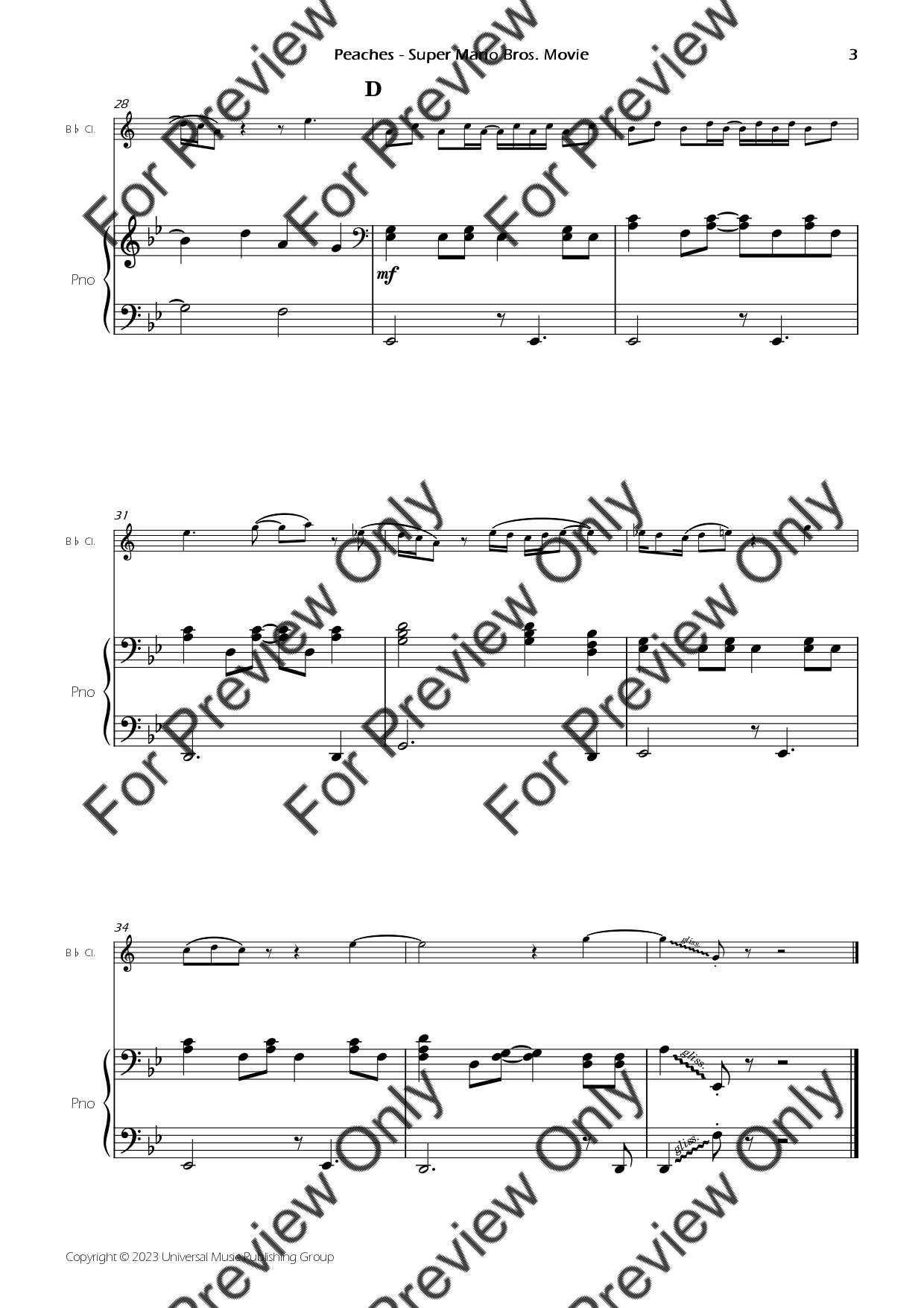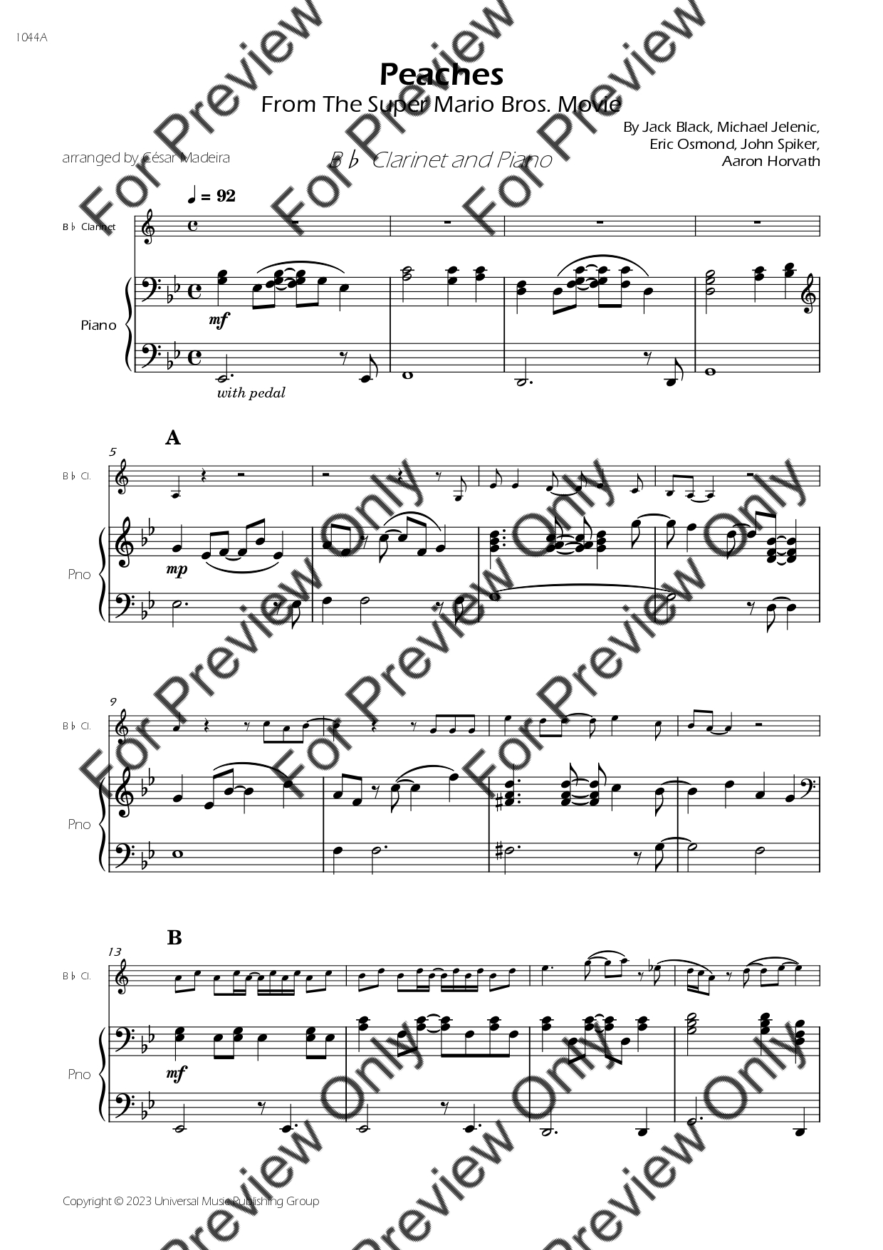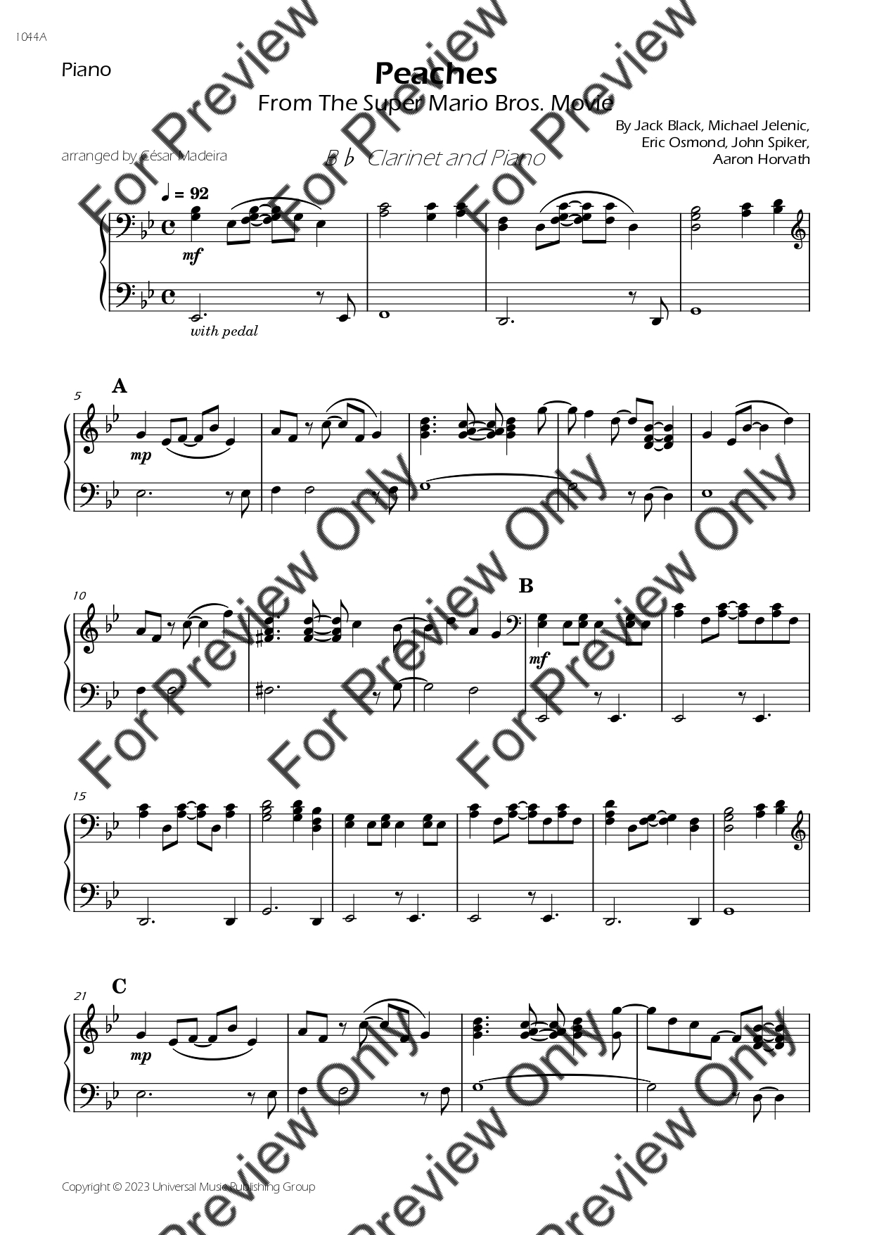 Peaches by Jack Black from The Super Mario Bros. Movie. Arrangement for Bb Clarinet and Piano. With Full Score and Individual Parts. Have fun!