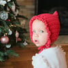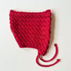 - The bonnet is knit flat from the ruffles towards the back of the head.