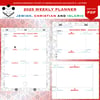 The Christian (Gregorian) calendar is used world-wide as the universal calendar for business, much like English is a universal business language. The Jewish and Islamic calendars are still in use today by members of those faiths and in certain countries. As a result, calendars combining one of these with the Gregorian calendar are readily available, but this calendar combines all three so we can all use the same one.