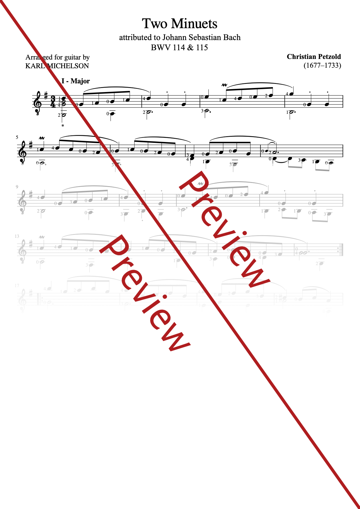 Two minuets in G major and minor, formerly attributed to J.S. Bach.