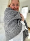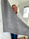 The large grey shawl is HUGE and gives you a massive Hug, whilst the smaller Hug is a perfect sized shawlette/ neck scarf.