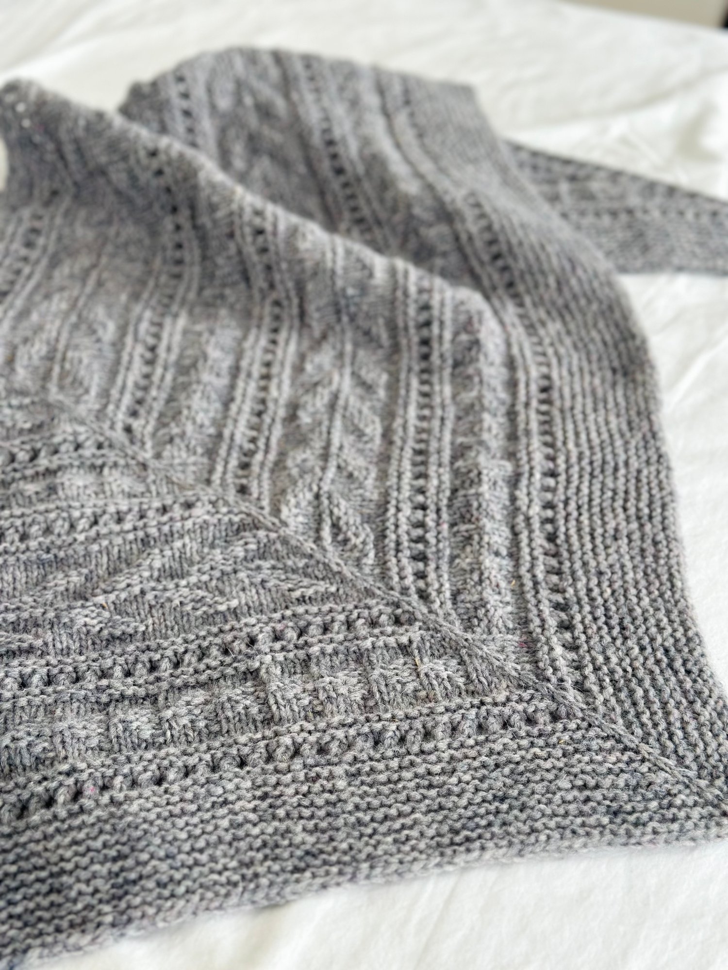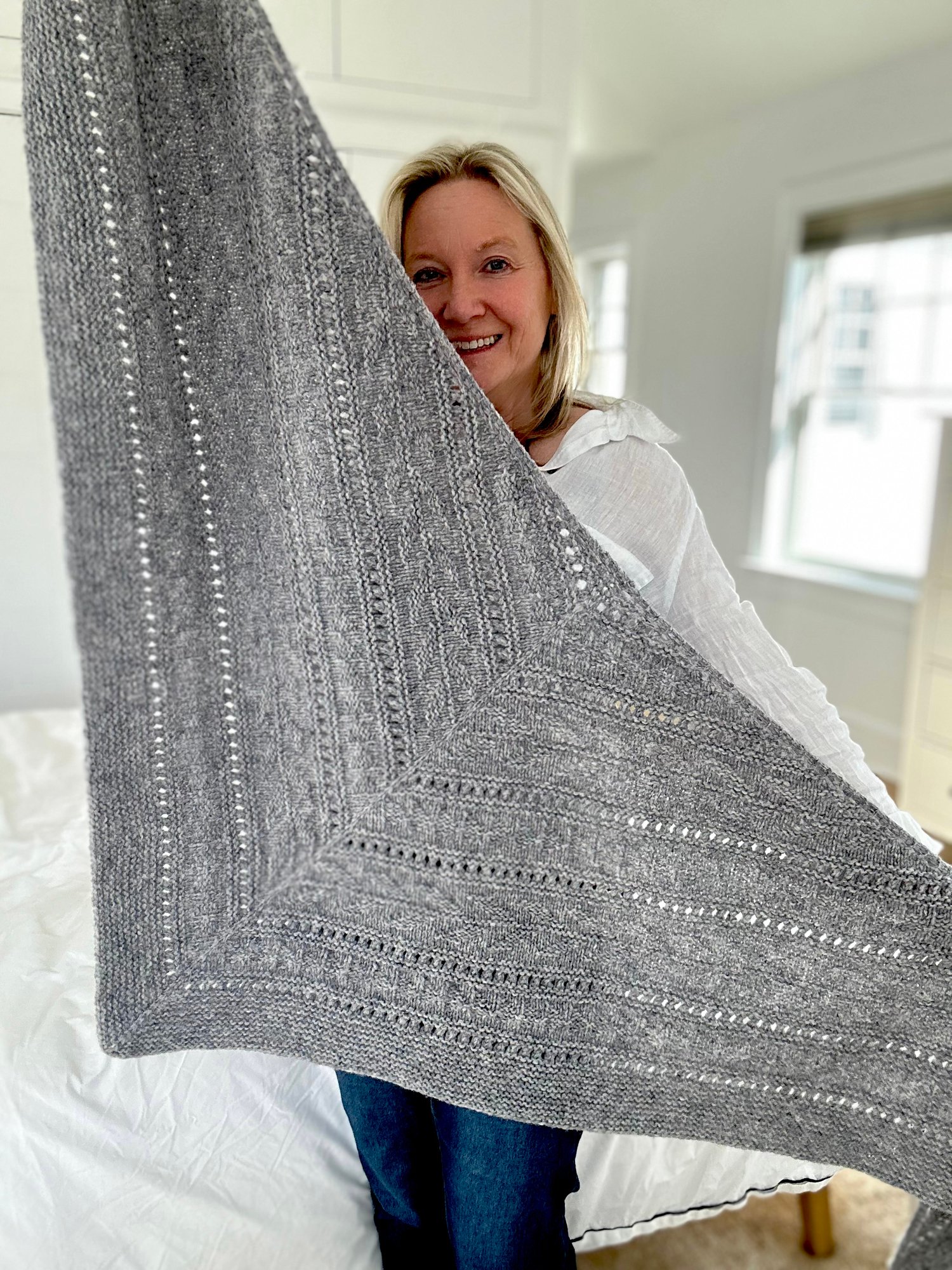 You can easily adjust its size and create a larger/smaller shawl, by repeating the sections/ stop earlier, and bind off when you reach your desired shawl size. You can also use alternative yarns and adjust needle size to create different sizes.