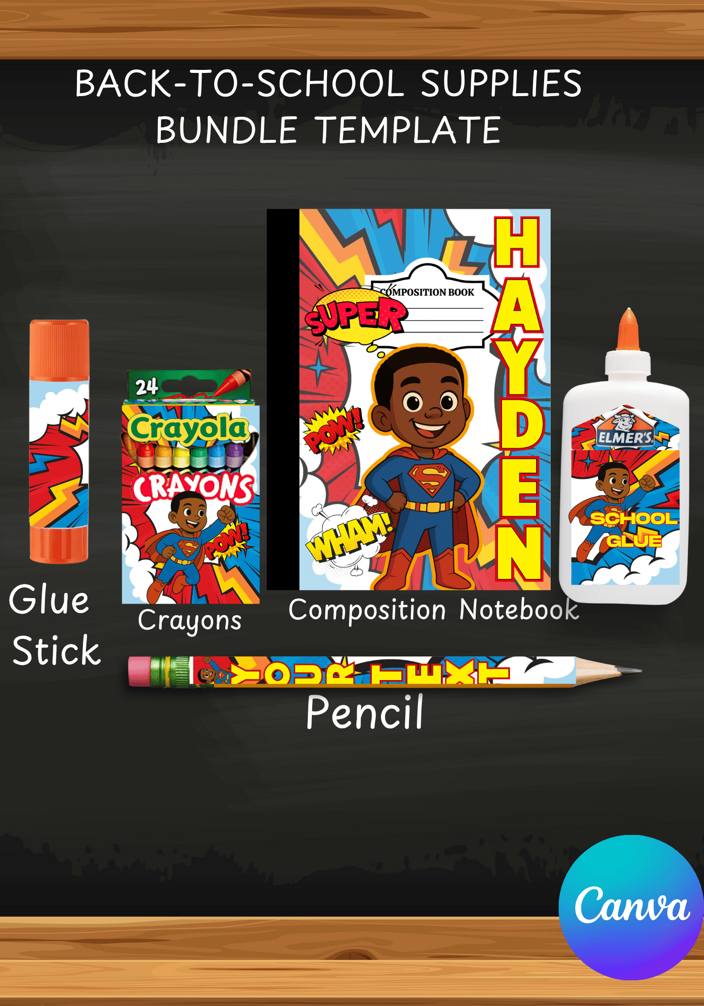 Design personalized school supplies with this fun and easy-to-use template. Perfect for adding a unique touch to school supplies! You can customize it for personal use or rebrand and sell your own versions.