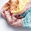 Suitable for a baby blanket or a lapghan in size, instructions also explain how you can modify the pattern to your desired measurements.