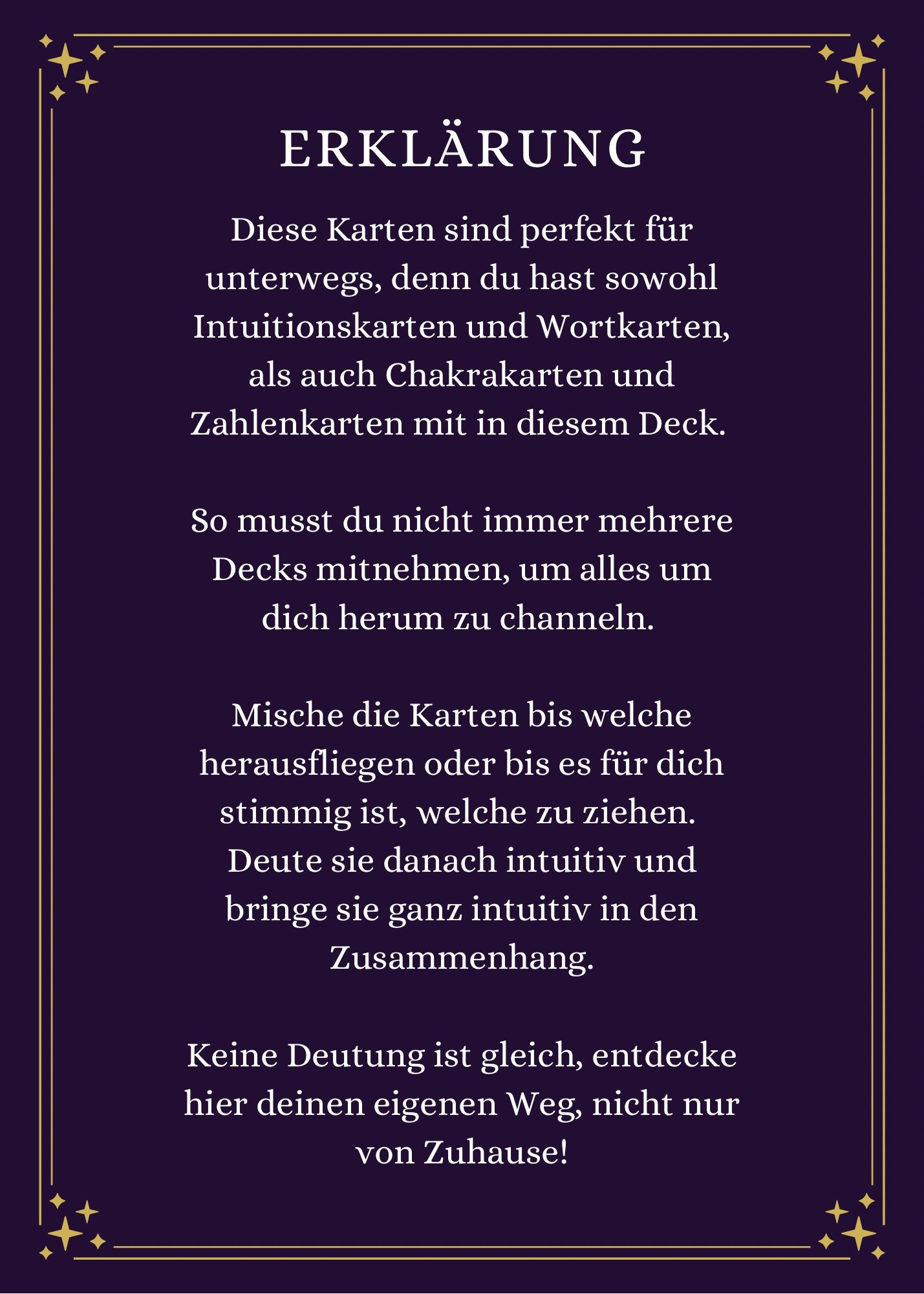 Du findest auch eine Erklärung, wie du mit diesen Karten für dich und Andere Botschaften der geistigen Welt erfragen kannst.