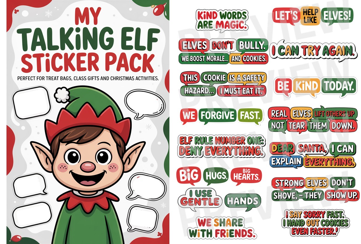 My Talking Elf Sticker Pack – Funny Christmas Quotes for Kids, Kindness Stickers & Holiday Classroom Printables