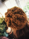 The hat has a simple construction with no shaping and drawn in with a cord at the crown and can be worn in a slouchie style or pulled over the ears as a beanie making it a good introduction to crocheting in the round as well as working simple crochet rib and shells.
