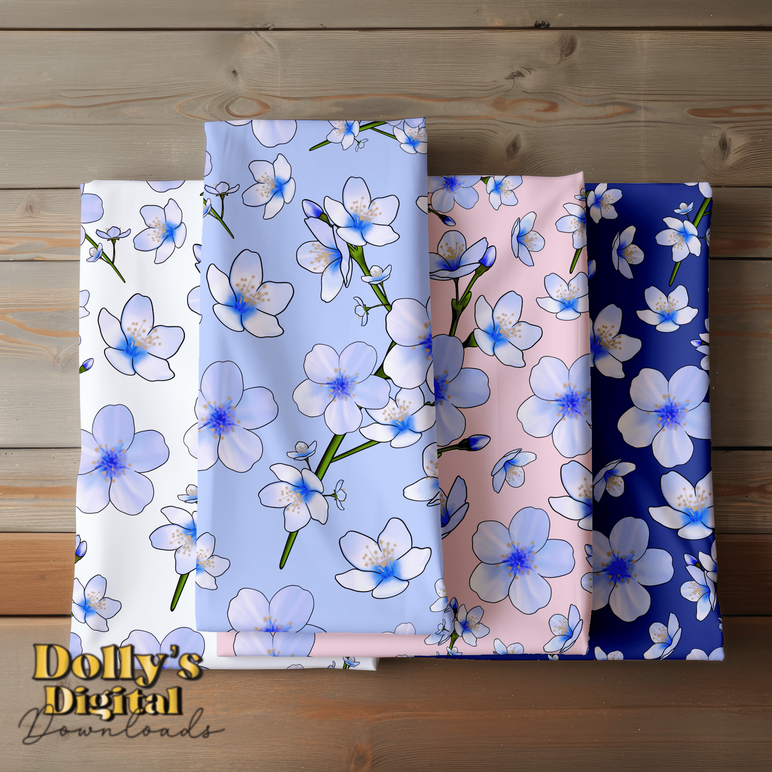 Instant digital download of our Blue Blossoms Seamless Pattern (4 PNG’s)