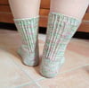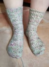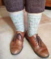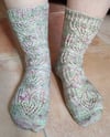 Elles se tricotent des orteils aux chevilles, avec un gousset et un talon renforcé. Le motif de dentelle est expliqué par diagrammes.