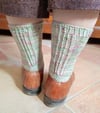 They are worked from toes up, with a heel flap and a gusset. The lace motif is explained by charts.