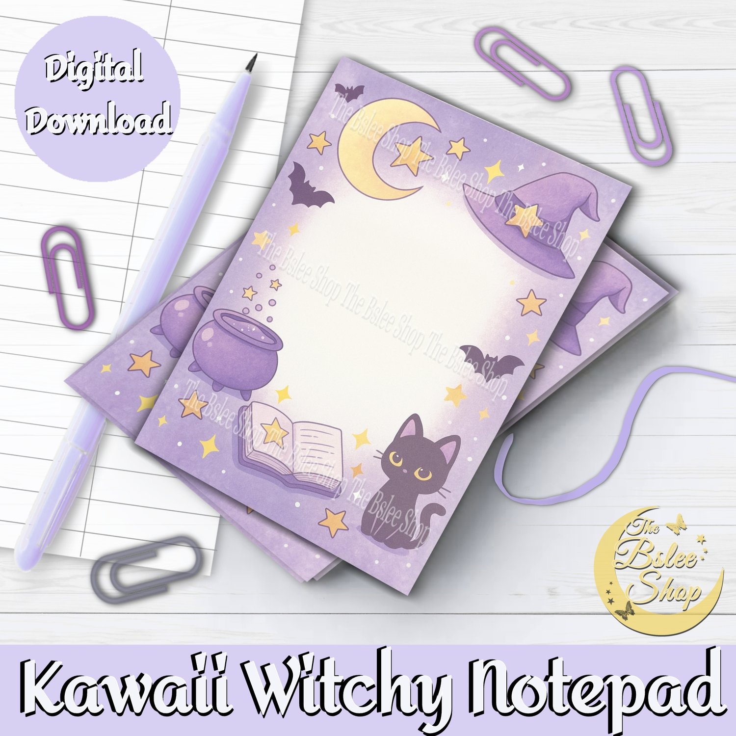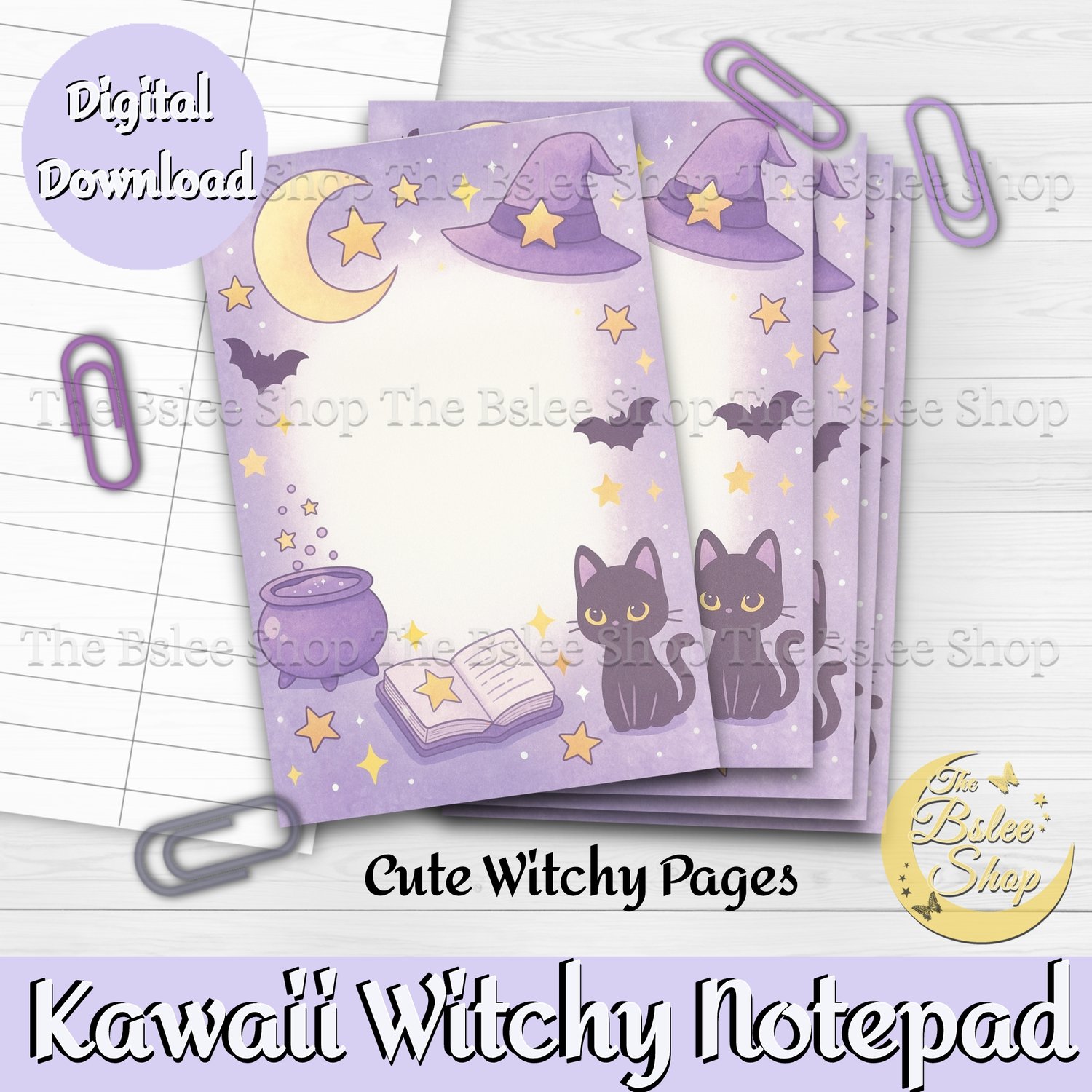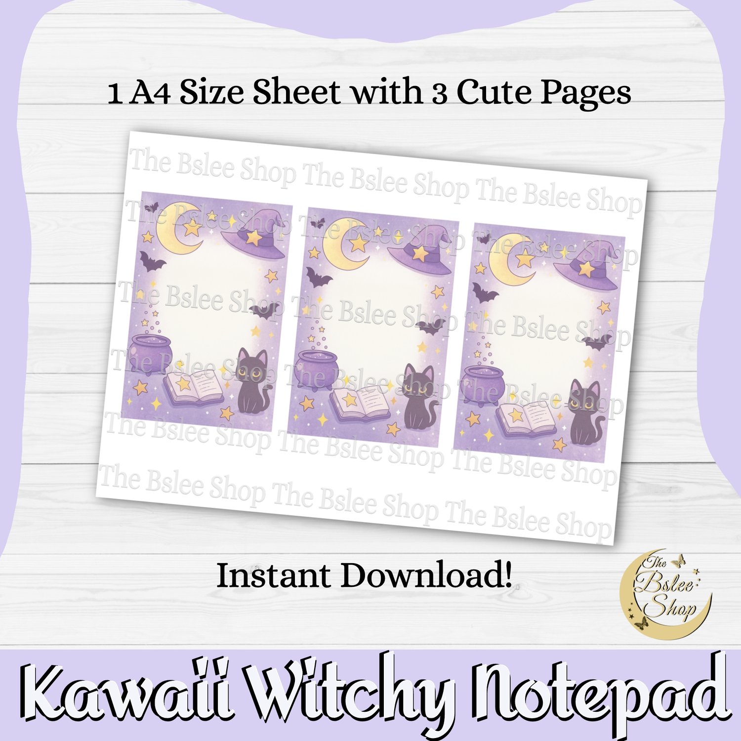 Step into a cute magical world with these kawaii purple witchy pages. You can create an adorable notepad, write down your recipes, notes and so much more! These kawaii pages can also be used in projects such as scrapbooking, journaling and collage. You will get 1 A4 size sheet with 3 cute witchy pages, you can print as many sheets as you wish! Save time by instantly downloading the items, there is no shipping cost.