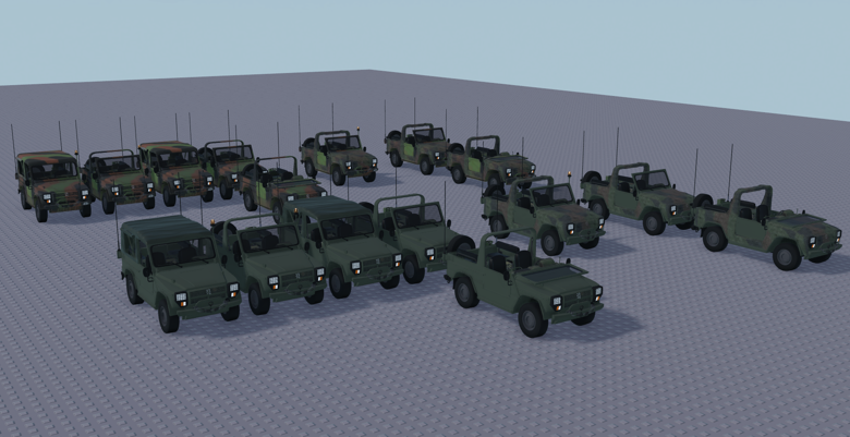 Peugeot P4, scripted in achassis, over 32 unique variants, includes camo desert and woodland, and green / desert coloring