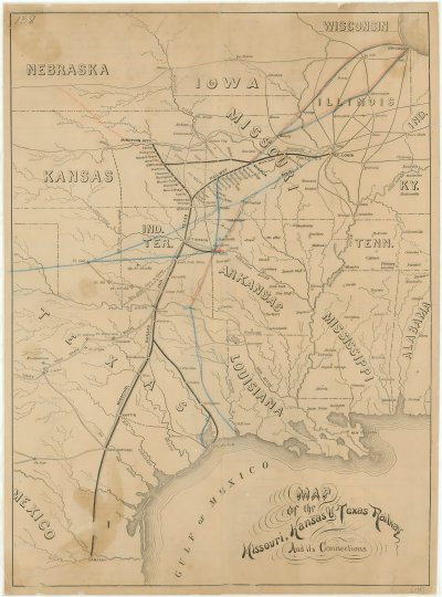 Map of MKT (Katy) Railroad 1875. Jpeg format, resolution 5926x8000px.