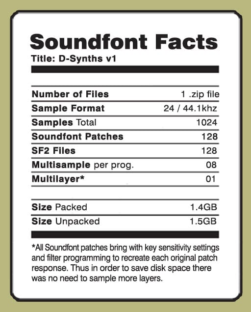 Based on the D50 and D550, this library recovers the less explored side of this classic bringing new life to its legacy. A legendary digital synth capable to generate the most vibrant sounds that are still up to date, a quality set of samples specially programmed for any software or hardware device capable to load Soundfonts. All instruments are multi-sample and multi-layer at 16-bit/44.1 stereo quality. Every sample was smoothly looped to save sample memory and loading time. More than 1.4GB of audio data including a stunning set of new patches sampled from the D50 classic synth.