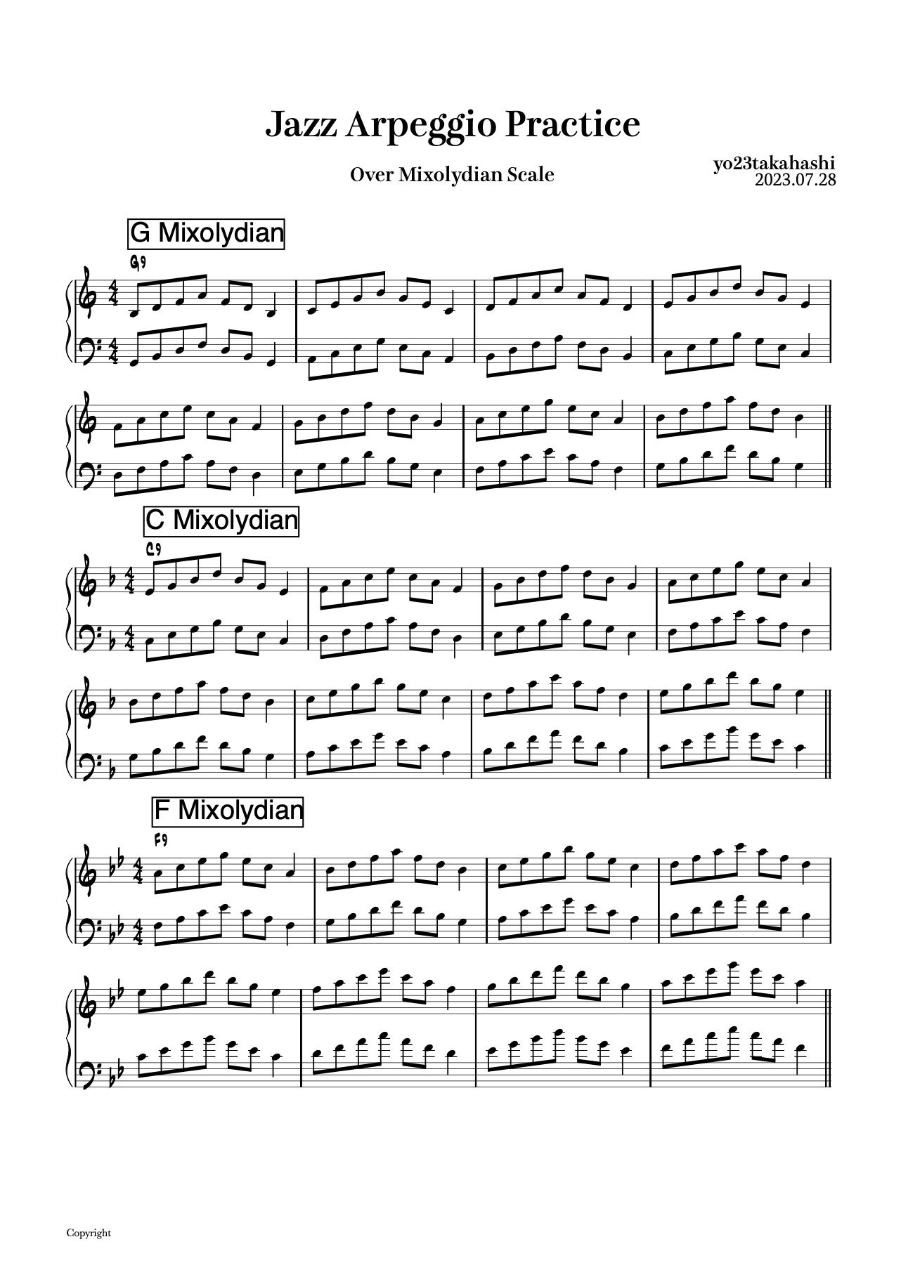 This is the third part of Jazz Arpeggio practice series, where we will be focusing on practicing arpeggios over the Mixolydian scale this time.