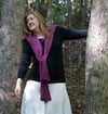 This stylish and unusual scarf is easier to knit than it looks! The ‘flare’ is created by a simple and easy to memorize lace pattern that leads into ribbing for the body of the scarf. Simple short rows are used to create a ‘square’ neckline at the top, and the ‘flare’ is then repeated in reverse at the end.