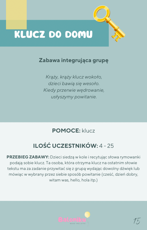 Każda zabawa zawiera rymowankę oraz opis jej przebiegu. Polecam nauczycielom wychowania przedszkolnego oraz wszystkim, którzy szukają pomysłów na wesołe i angażujące zabawy w kole!