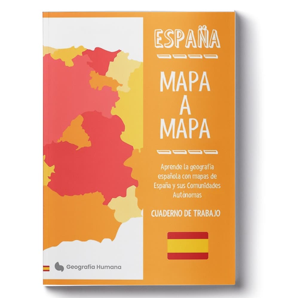 Cuaderno de ejercicio y trabajo ideal para niños o estudiantes de geografía española. Perfecto como apoyo para educar desde casa asignaturas de ciencias sociales y geografía.