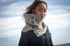 When selecting yarn for this project, look for a soft, bouncy worsted weight yarn with good memory that feels comfortable around your neck, and gives a fairly firm fabric at the pattern gauge. You will need approximately 305 yds/279 m.