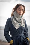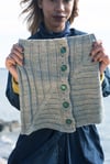 Desolation Sound’s shifting textures and geometric lines evoke mountains rising from the sea. The widening rib section shapes this deep cowl, giving it a narrower top that hugs the neck. Reversible cables act as buttonholes, allowing you to decide where to place your buttons—and how many to use—when the piece is done. These cables combine with the ribbing to make an edge that looks as good folded back as it does buttoned up. Desolation Sound is worked flat in one piece, using knit, purl, decreases, yarn overs, and 4-stitch cables. Instructions are both written and charted.
