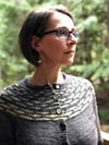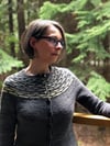 Using a simple slip-stitched pattern, inlayed ombré yarn winks out from between garter stitch borders to create a decorative circular yoke. This seamless cardigan is a showcase for a precious skein of ombré or a gradient set. The gradient mimics enamel cloisonné in the decorative yoke of this charming cardigan.