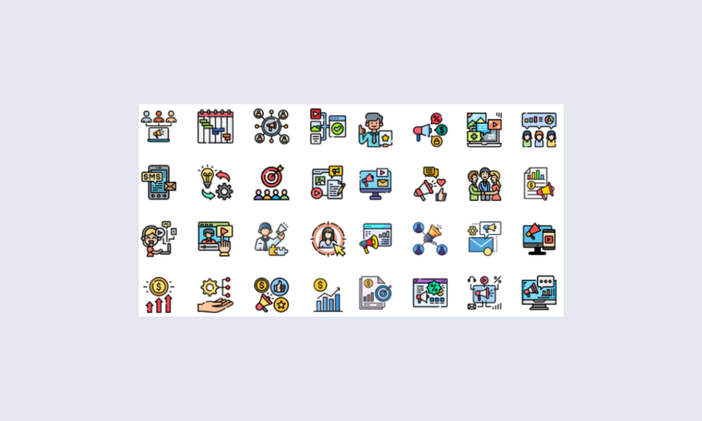 Esta colección incluye 50 iconos de marketing en formato PNG, listos para usar y con un estilo limpio y profesional.