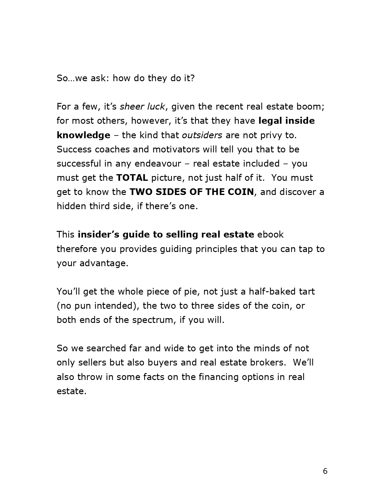 The goal of this ebook is to help you discover some of the secrets in real estate that the average person is not aware of. Knowing these secrets – or tricks – or inside scoop – whatever you want to call it, will give you that edge and turn you into a smart investor.