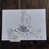 10,5 cm / 4.11 inch x 14,8 cm / 5.8 inch printed on thick paper.