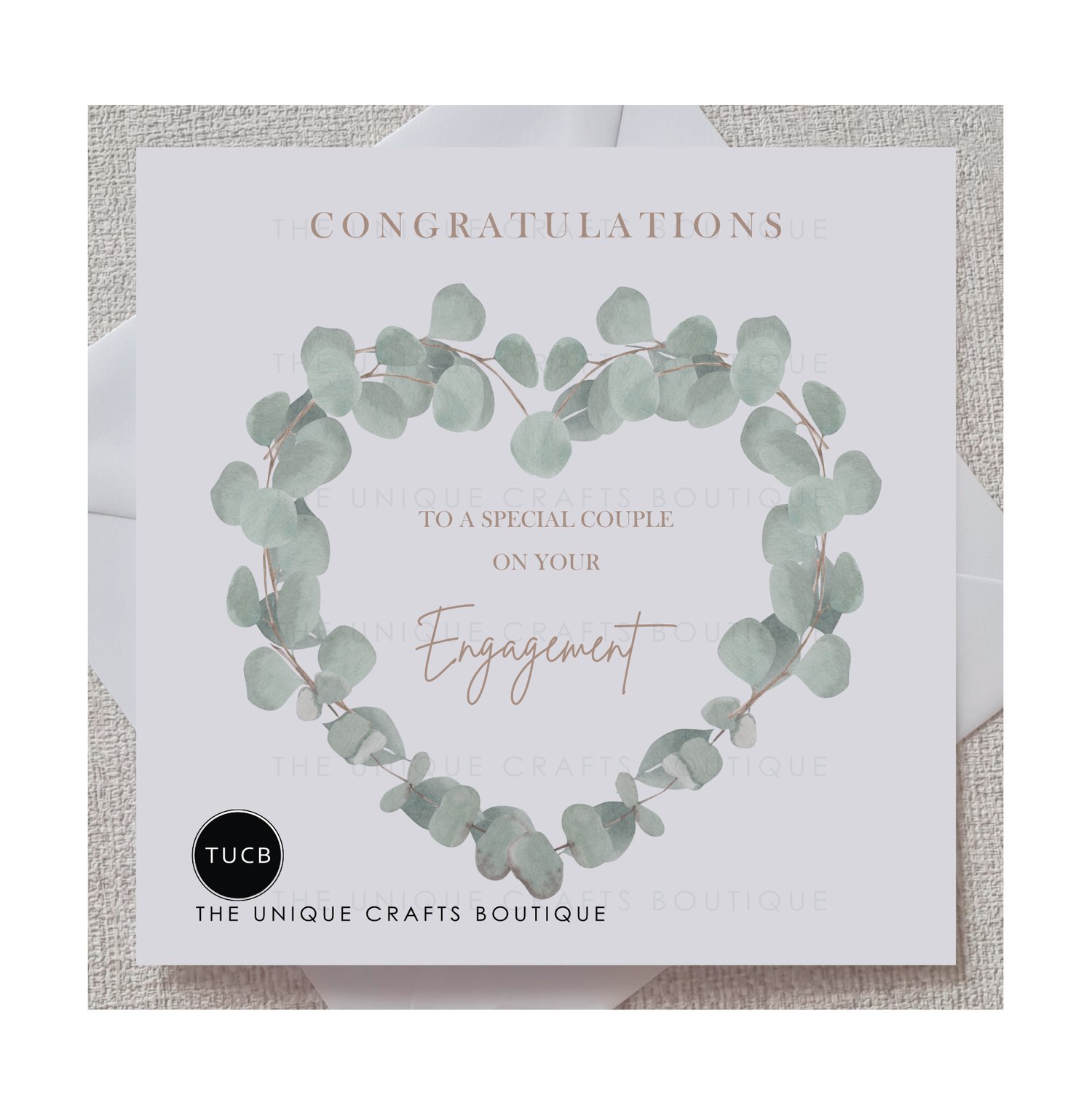 Printed with a stunning Eucalyptus leaf heart and the message 'congratulations, to a special couple on your Engagement' on the front.