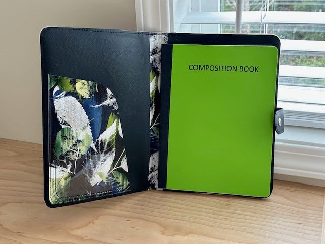 The Journal Cover is a free pattern for all to enjoy. This cover is meant to be used with a composition notebook 7 1/2" W x 9 3/4" H. I purchase mine at the dollar store as they are very reasonable and come in many colours. The hard cover composition notebooks can have the back cover slid into the back slot of the cover leaving the front slip pocket open for storage. The softer cover composition books can have both their front and back covers slid into the pockets to keep it secure. Personal preference.