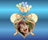 Perfect for children's photos, birthday invitations, baby announcements, magical vacation memories, or simply adding a joyful touch to any picture. The example shows a delightful little girl's photo, bringing the frame to life. Easily drag and drop your own image into the heart-shaped placeholder!
