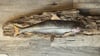 The Whitefish is hand tooled on copper, flame and hand painted. The backboard was found in a creek in Bozeman, Montana. The fish is 21 inches, the back is 9" by 34".